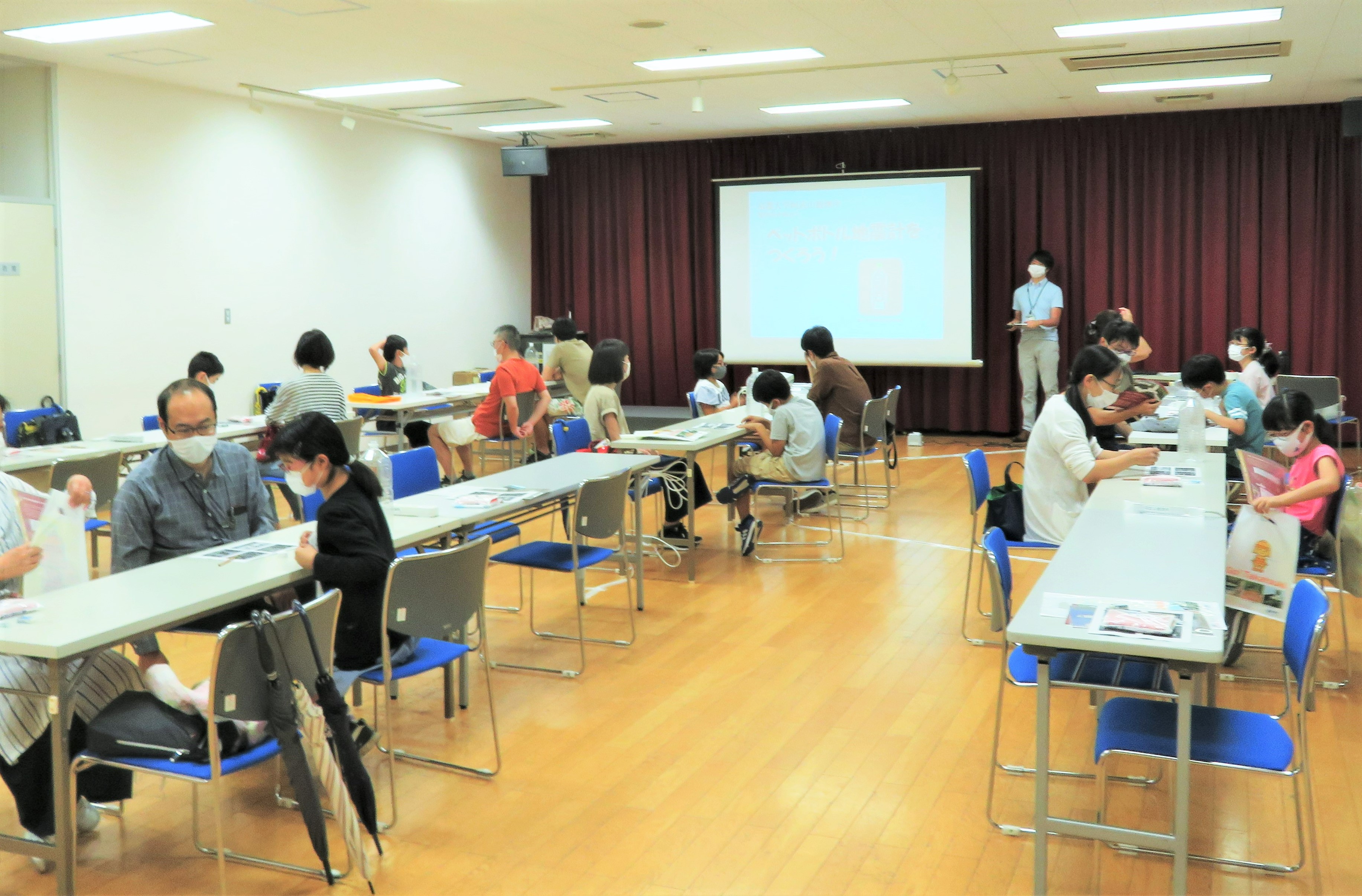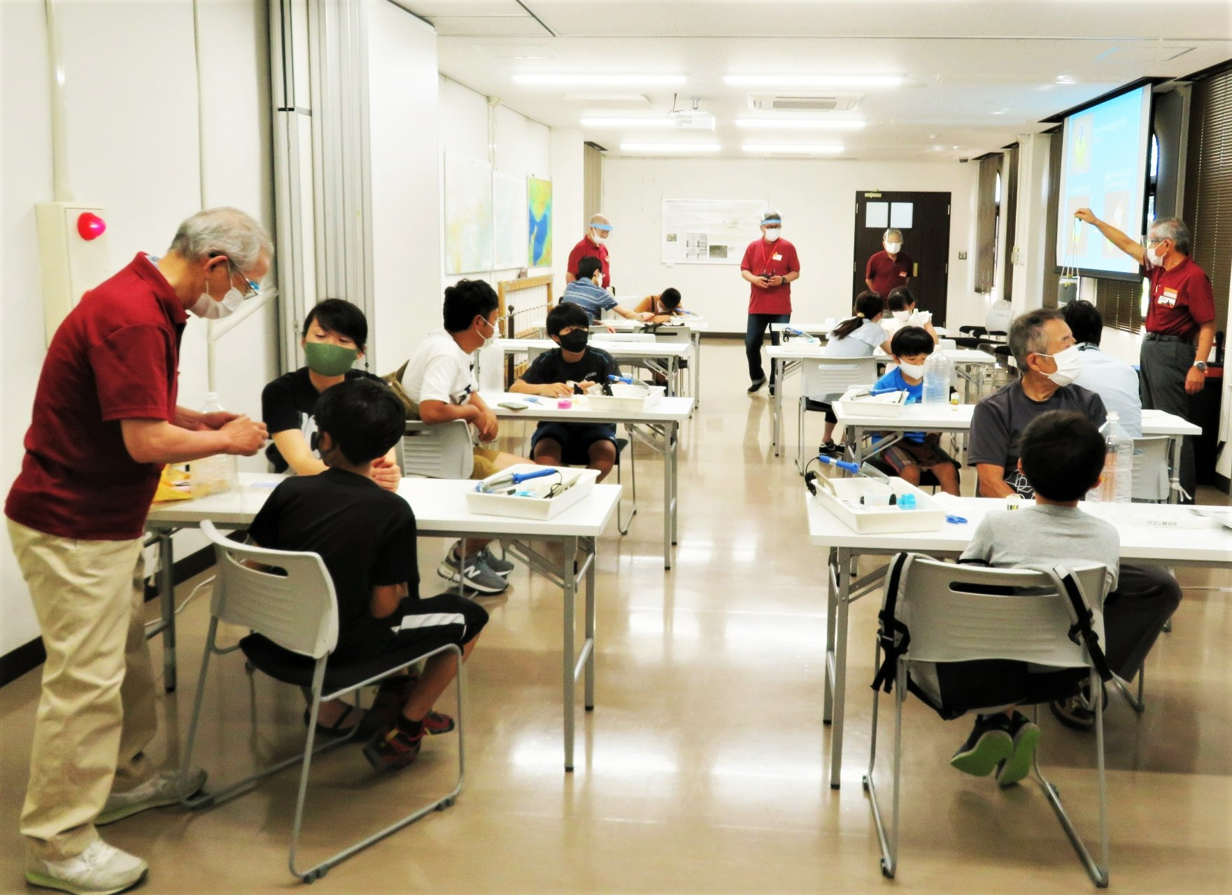 日曜日とあって、お子様連れや家族で参加の方が多くいらっしゃいました。セミナー室は換気を徹底し、机も間隔を空けて一人掛けにしています。サポーターは、マスク・フェイスシールドと感染予防に努めての対応です。