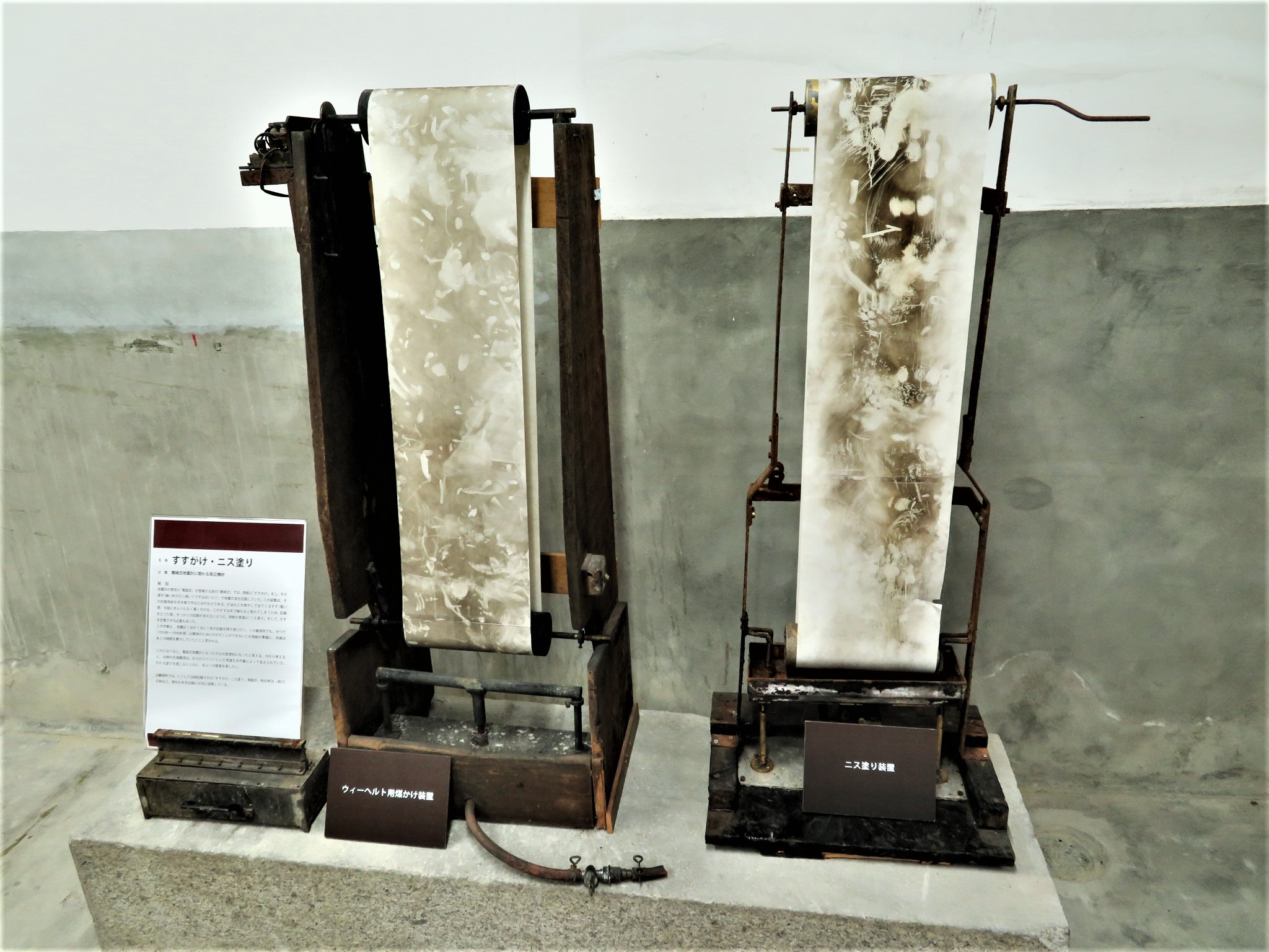 ニス掛け装置は記録を保存するためにニスを付けて乾燥させれば出来上がりです。このような記録が60年間でおよそ15万枚を保存しています。